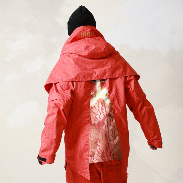 フード下の雨除けは、肩まですっぽりと覆う設計。